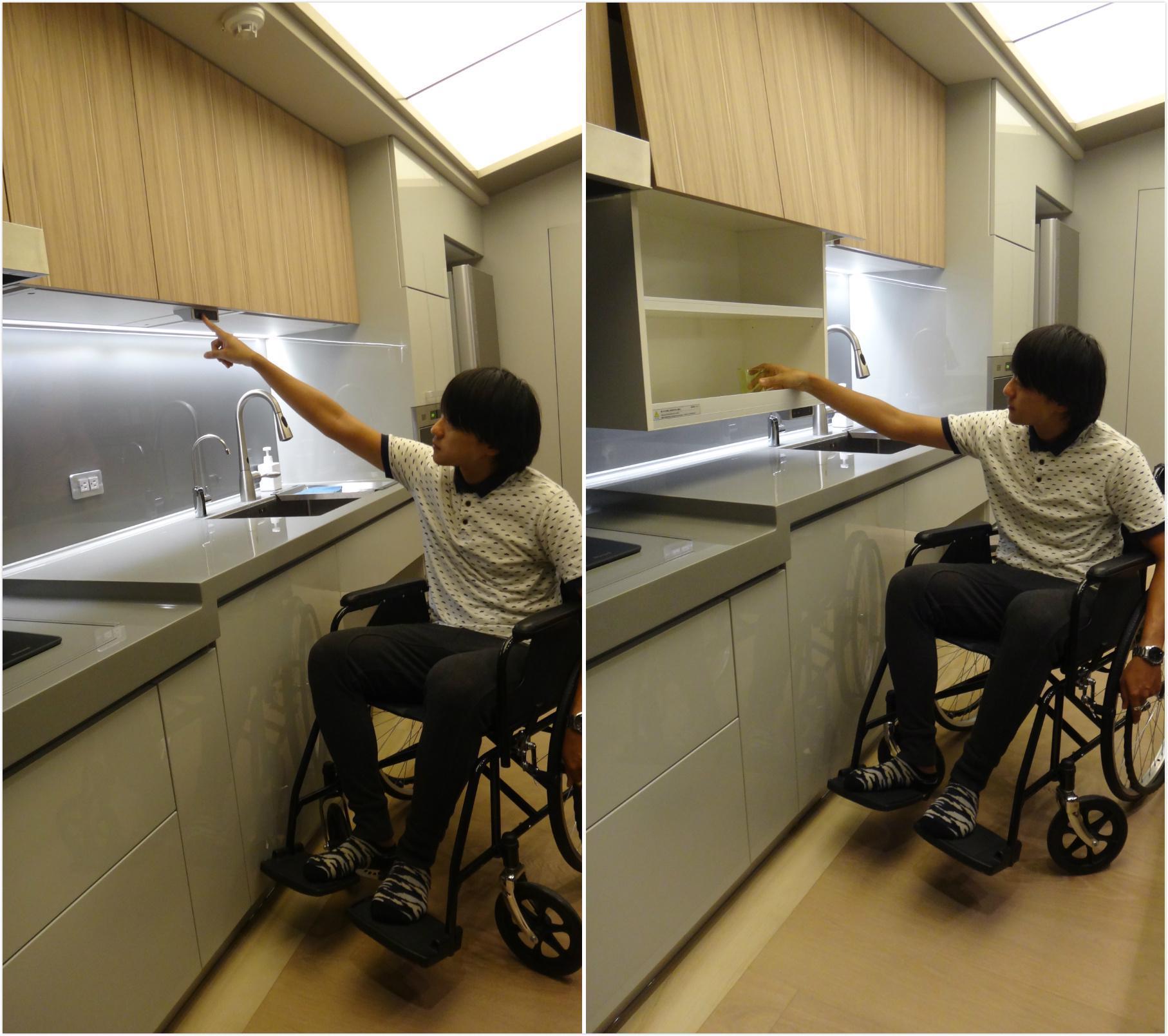 日本的设计考虑得十分周全。就拿厨房的吊柜来说,在国内,很多人会因为吊柜装得太高,使用不方便而有所顾虑,但在日本就不会出现这种情况。即使是残疾人也能方便使用高吊柜,他们会安装一种一键式按钮升降篮,非常人性化,使用起来也很方便。